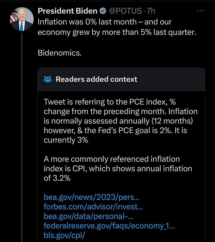 Gli esempi positivi non mancano, anche quando fact checker e giornalisti mainstream hanno fallito nel riportare esattamente delle informazioni da parte dell’ex-Presidente Biden, come nel caso dei dati sull’inflazione: